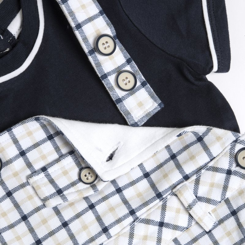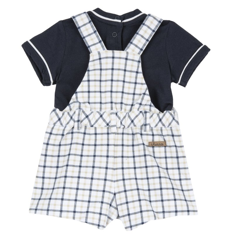 SET 2: T-SHIRT SHORT SLEEVE + SHORT DUNGAREES - WHITE/BLUE